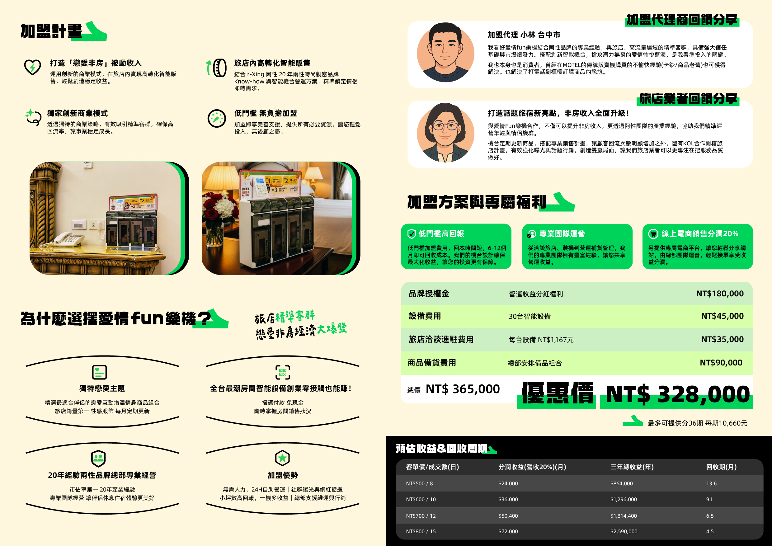 1️⃣ 投資後由你主導佈點,自己找合作旅館,談分潤 → 你主導市場!