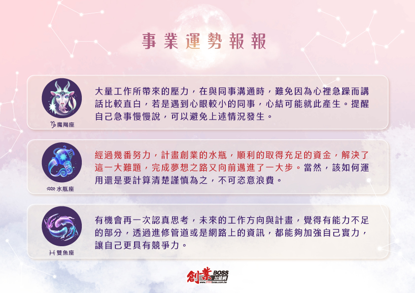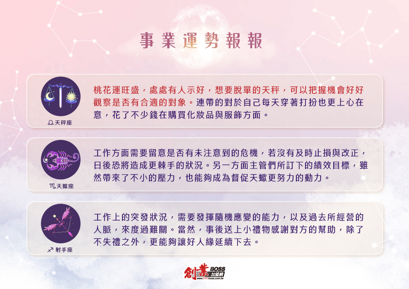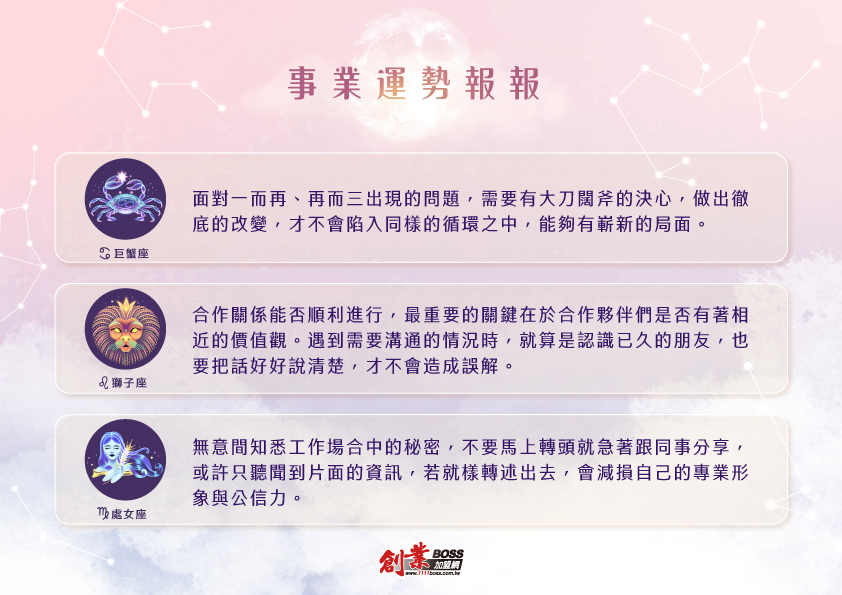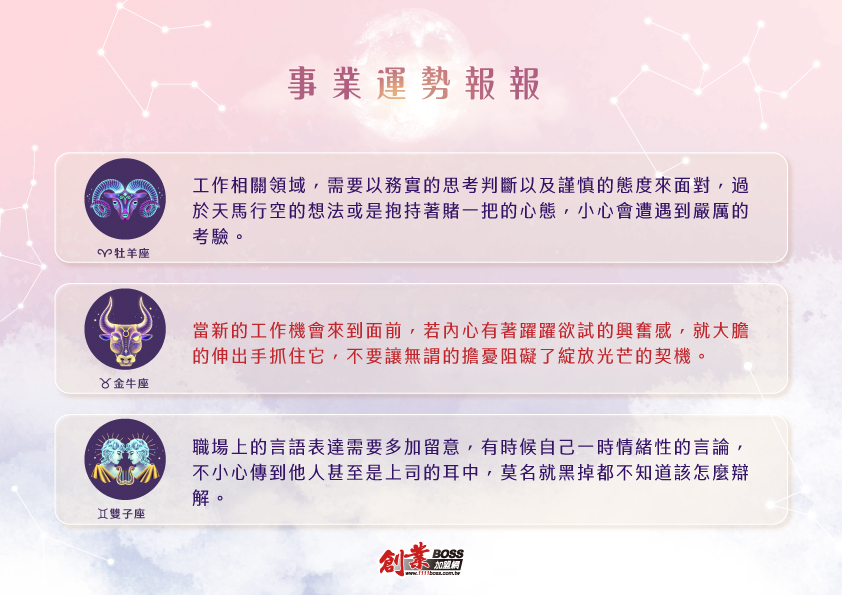 每個人的星座、上升各不同程度影響運勢,應把握大方向為參考。